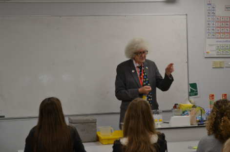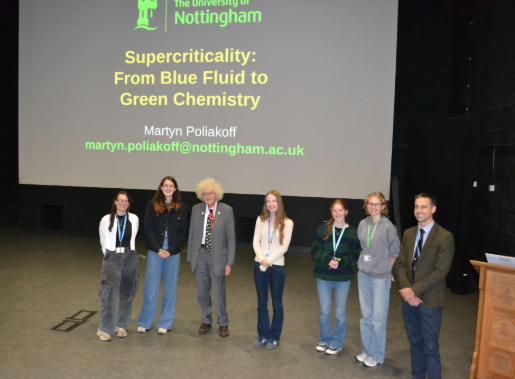 Additionally, QuEST hosted a talk by Sir Martyn Poliakoff. He started with a Q&A session for Year 7 where there was a non-stop bombardment of questions for the entire time. He also delivered a fascinating demonstration for the Year 12 chemistry students. He was also able to enjoy the EPQ presentations that were happening that day, allowing QE students to showcase their hard work. Finally, he gave a fascinating lecture to students from all years in the theatre. His lecture explored two main topics; supercritical fluids and how chance events had affected his career. He engaged everyone in the room and inspired many students. It was an honour to host such a renowned scientist and the event truly started off QUEST’s year with a bang!