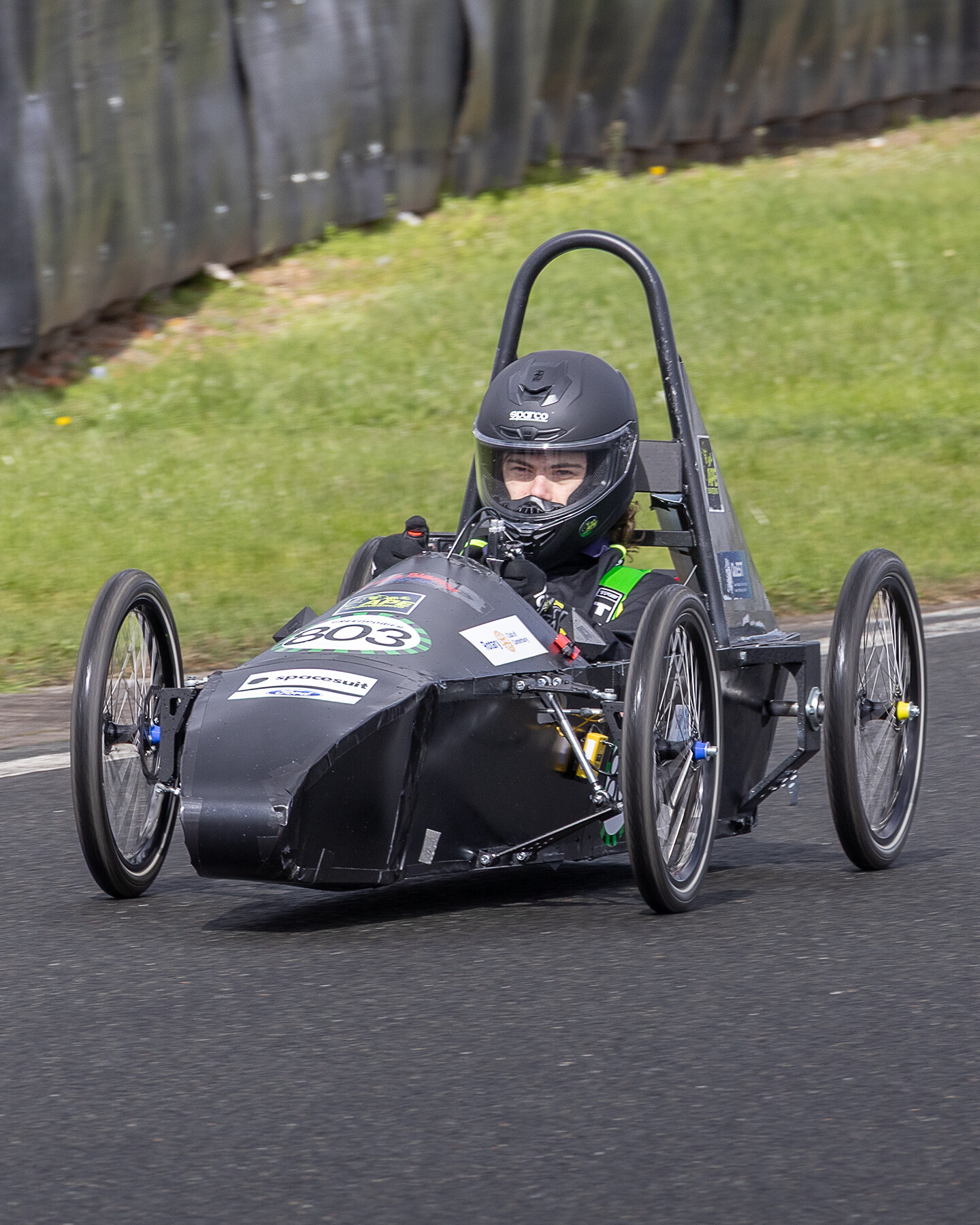 We battled the hail, rain, wind and sun today. When we arrived we set up, added our final touches to the car and went to scrutineering, and passed! This was a major milestone to know that we had built our car correctly and it was race legal. The day consisted of two practice sessions, where we were lapping quicker than 50% of the cars. This was our first time driving flat out, and it was difficult fighting the crosswind and hail.